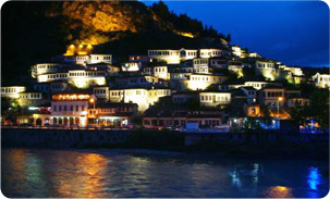 Kompleksi i lagjes «Mangalem» është gur i çmuar në artin e ndërtimeve, në të cilën kompozimi harmonik i shtëpive ka arritur një nivel të lartë. Ka formën e një piramide elegante që imiton siluetën e kodrës, në majën e së cilës është ngritur kështjella. Ky kompozim, kaq i madh në volum aq sa delikat në kompozimin e saj, karakterizohet nga një transparencë intensive për shkak të numrit të madh të dritareve, nga e cila merr emrin «qyteti i një mijë e një dritareve». Vizitorit i tërheqin vëmendjen rrugicat, të cilat edhe pse janë të «fshehura» kanë një bukuri të jashtëzakonshme. Shumë intime, me errësirën e tyre këto rrugica duket sikur sfumojnë godinat e lagjes. Rrugica si këto nuk mund të harrohen me lehtësi.